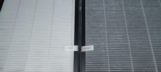 Filtro HEPA instalado en una vivienda de la Calle Castilla-Hermida: izquierda nuevo, derecha 6 meses de funcionamiento (8h/día).