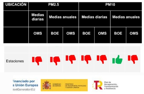 Altos niveles de contaminación en la Plaza de Las Estaciones de Santander. Fuente: Proyecto ZBE Santander (WSP)
