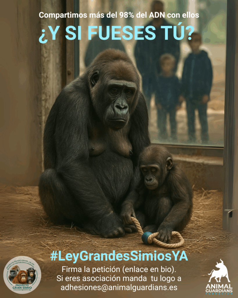 “Confiamos en que esta reunión suponga el comienzo de un camino legislativo real y comprometido. España tiene la oportunidad histórica de ser el primer país del mundo en proteger por ley a sus parientes evolutivos más cercanos”, señala Marta Esteban Miñano, presidenta de Animal Guardians.
