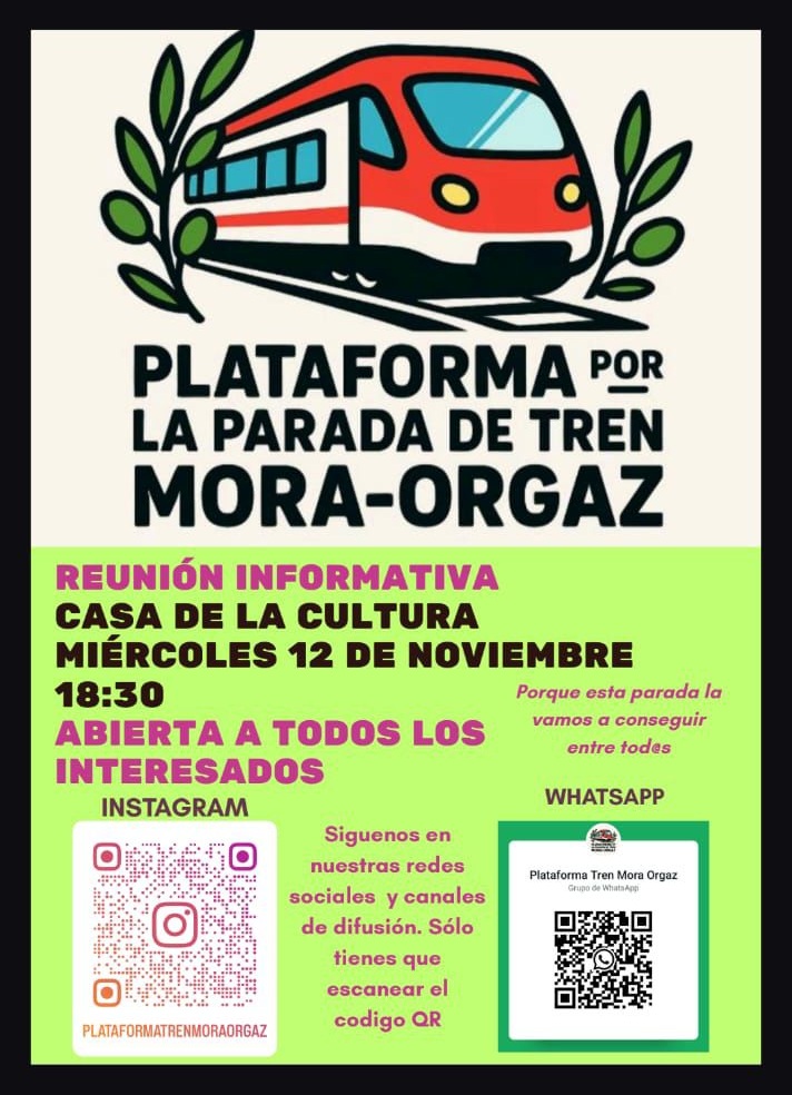Miércoles 12 de noviembre 18,30 h. Casa de la Cultura de Mora Convoca la Plataforma por el Tren en Mora y Orgáz.