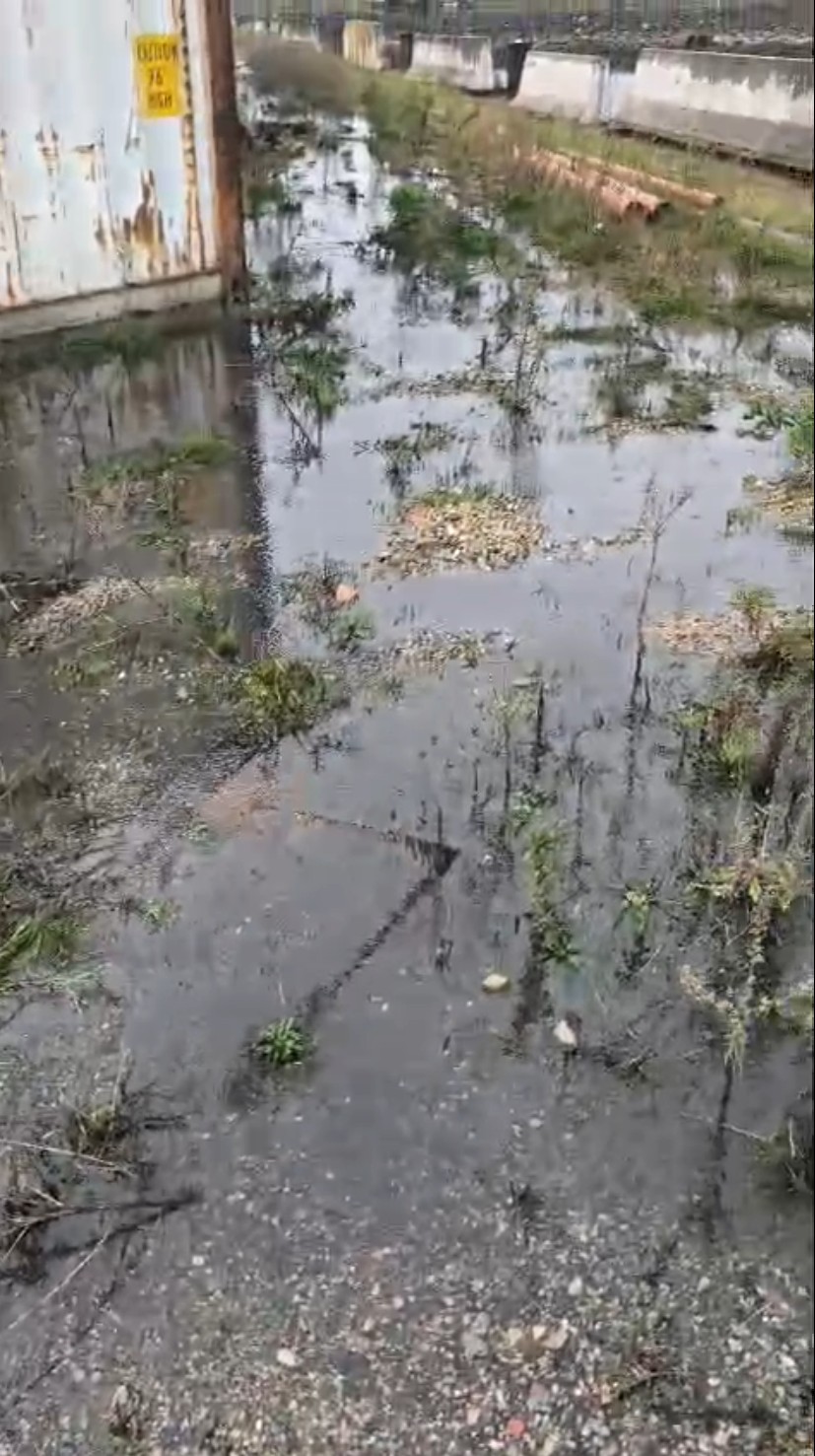 Cuando llueve se arrastran todos los productos químicos y sólidos contaminantes que están en los contenedores con la consiguiente contaminación del suelo y de las aguas del mar, son vertidos justo a la altura de la captación del agua de la nueva piscifactoría de lenguados, lo que podría afectar a la calidad del agua que allí se capta para la planta.