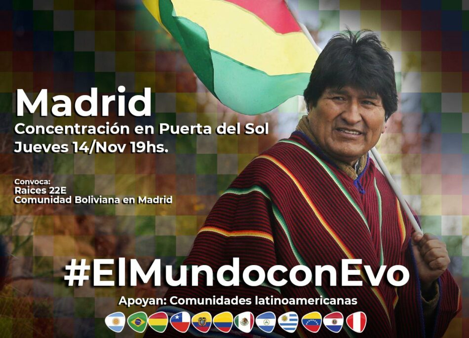#ElMundoconEvo: concentración en Madrid contra el golpe de Estado en Bolivia