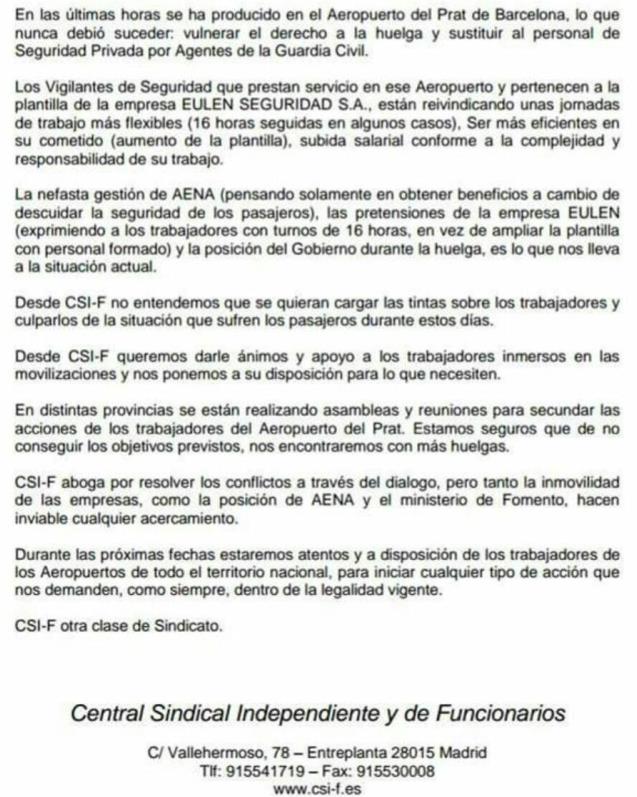 CSIF considera que el Gobierno revienta el derecho de huelga del personal de EULEN en AENA Barcelona