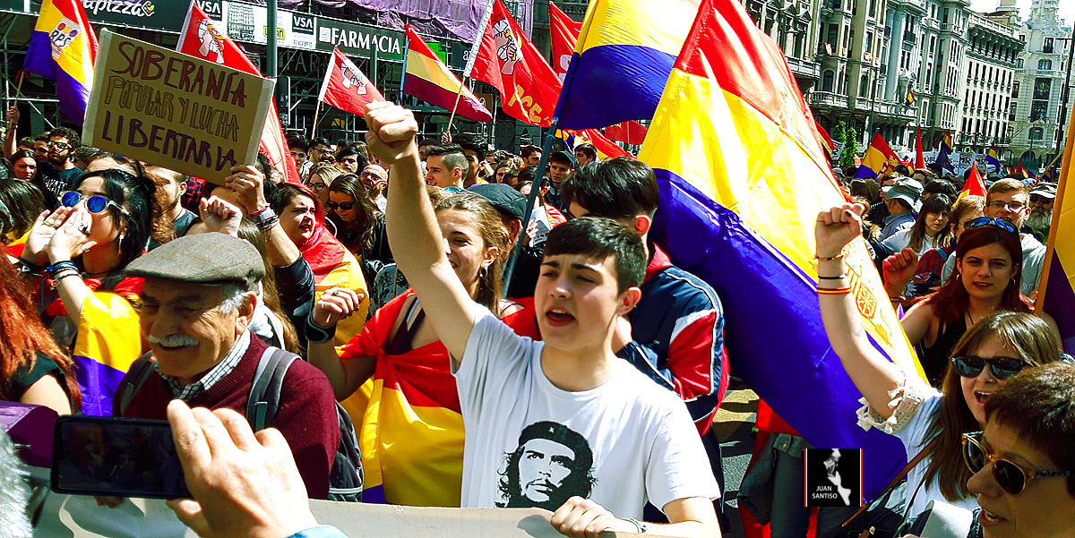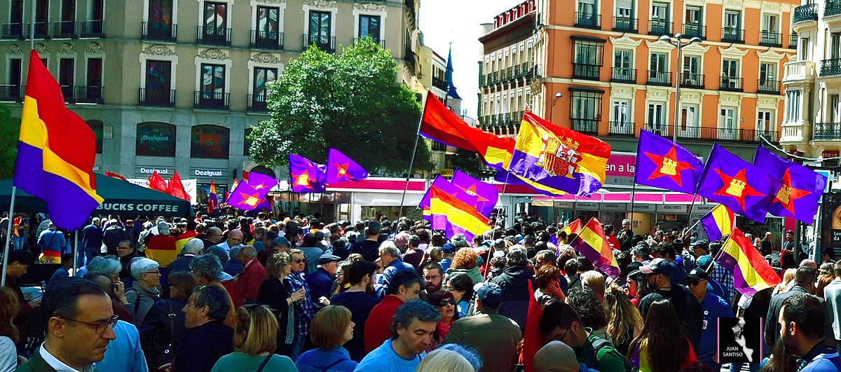 El 14 de abril de 2019 (antesdeayer) fue el 88 aniversario de la proclamación de la II República. Miles de personas, convocadas por los colectivos a favor de la III República han salido en toda España para teñir con la tricolor las calles y plazas, en unos días en las que la Constitución españolas está siendo enarbolada por la derecha y la extrema derecha.