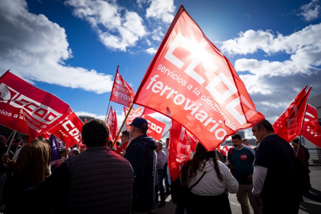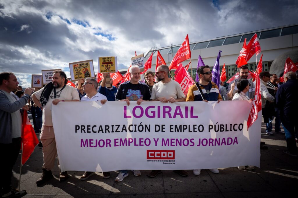 Los trabajadores y trabajadoras de LogiRAIL se concentran para exigir mejoras en sus condiciones salariales