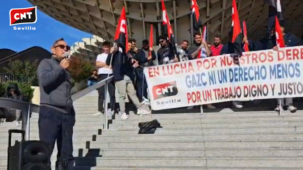 Durante la séptima semana de huelga, los trabajadores de GAZC volvieron a movilizarse en una concentración en Las Setas de Sevilla, reivindicando su compromiso firme con la lucha pese a los intentos de desgaste utilizados por la empresa. El sindicato CNT recuerda que “seguimos plantando cara a una empresa que no paga un sueldo digno, permite el esquirolaje, no respeta el derecho a huelga y difunde mentiras para intentar romper nuestra lucha. La dignidad no se negocia”.