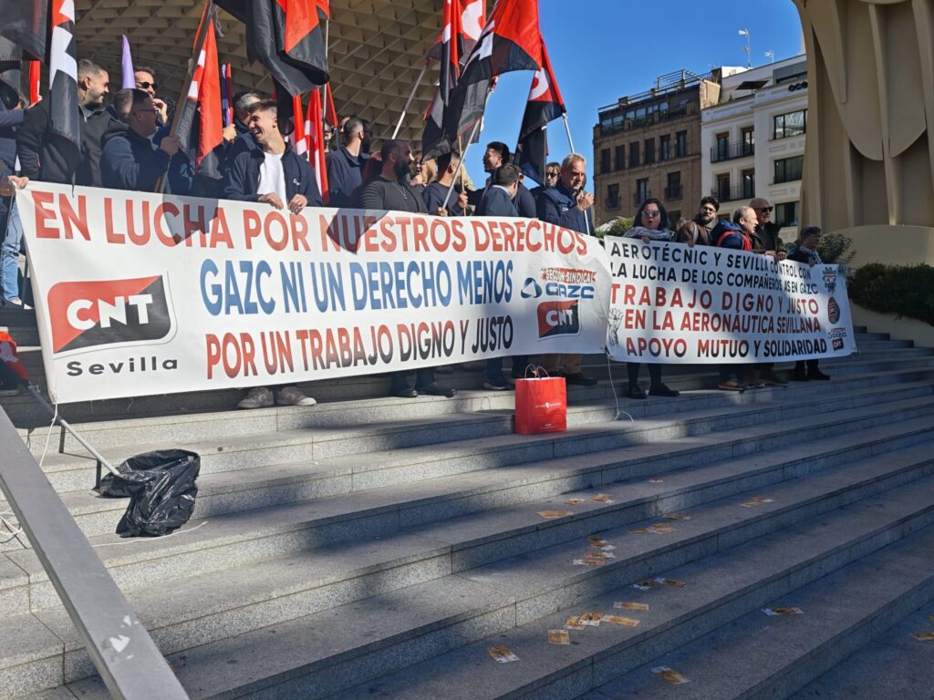 25 de noviembre de 2025.- Siete semanas después del inicio de la huelga indefinida en GAZC Sevilla S.L., la dirección de la empresa se sostiene gracias a subvenciones públicas supuestamente destinadas a mejorar las condiciones de trabajo. La sección sindical de CNT denuncia que la empresa, proveedora directa de Airbus, Airbus Defence & Space, Boeing y Bombardier, continúa estirando el enfrentamiento con la plantilla mediante prácticas de esquirolaje externo, con un entramado de subcontratas a otras empresas auxiliares que le permite mantener parte de la producción.