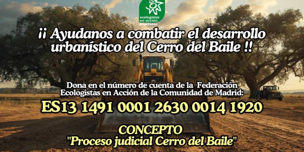 Para hacer frente a los costes derivados de la asesoría legal, la presentación de recursos y las posibles medidas cautelares, Ecologistas en Acción ha habilitado una cuenta corriente para recibir donaciones. La organización hace un llamamiento a la participación ciudadana, por pequeña que sea la aportación, para defender uno de los últimos espacios naturales que albergan una rica biodiversidad, procuran aire limpio al municipio y lugares donde pasear y recrearse para sus vecindarios.