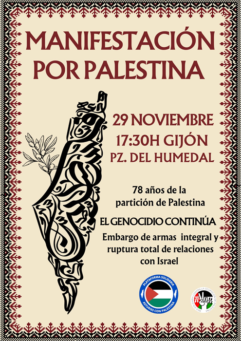 Manifestación por Palestina en Xixón: «El genocidio continúa», el 29 de noviembre