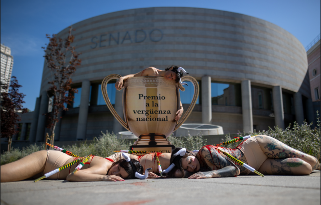 “Toros muertos” de PETA se hacen presentes en la entrega del Premio Nacional de Tauromaquia en el Senado