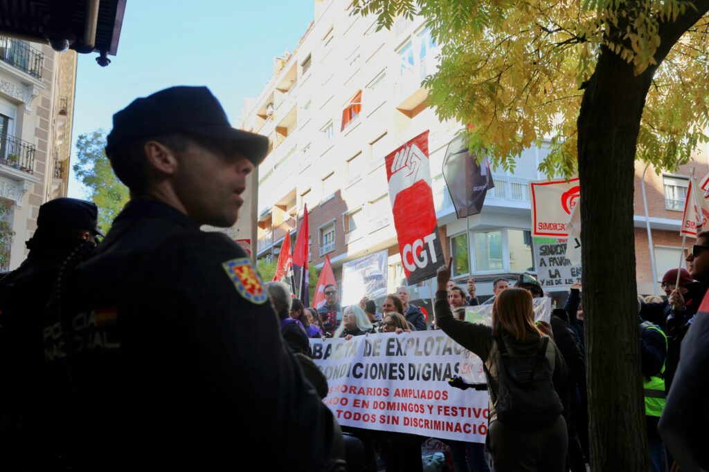 La organización anarcosindicalista ya anunciaba hace algunos días que retomarían el calendario de movilizaciones a partir de noviembre, para dar continuidad a la lucha que mantienen contra la dirección empresarial y por la mejora de sus condiciones laborales. En este sentido, desde CGT han querido recalcar que la plantilla del Corte Inglés trabaja en un entorno laboral propio de principios de siglo: jornadas de diez horas o más, jornadas en domingos y festivos sin remuneración extraordinaria, salarios mínimos y sin incentivos, horarios que imposibilitan a la gran mayoría de trabajadoras la conciliación familiar y personal, despidos sin nuevos reemplazos o contrataciones, etc. Todo ello se traduce en esperas interminables, un servicio desbordado por el agotamiento de las plantillas e incidencias que nunca se resuelven.