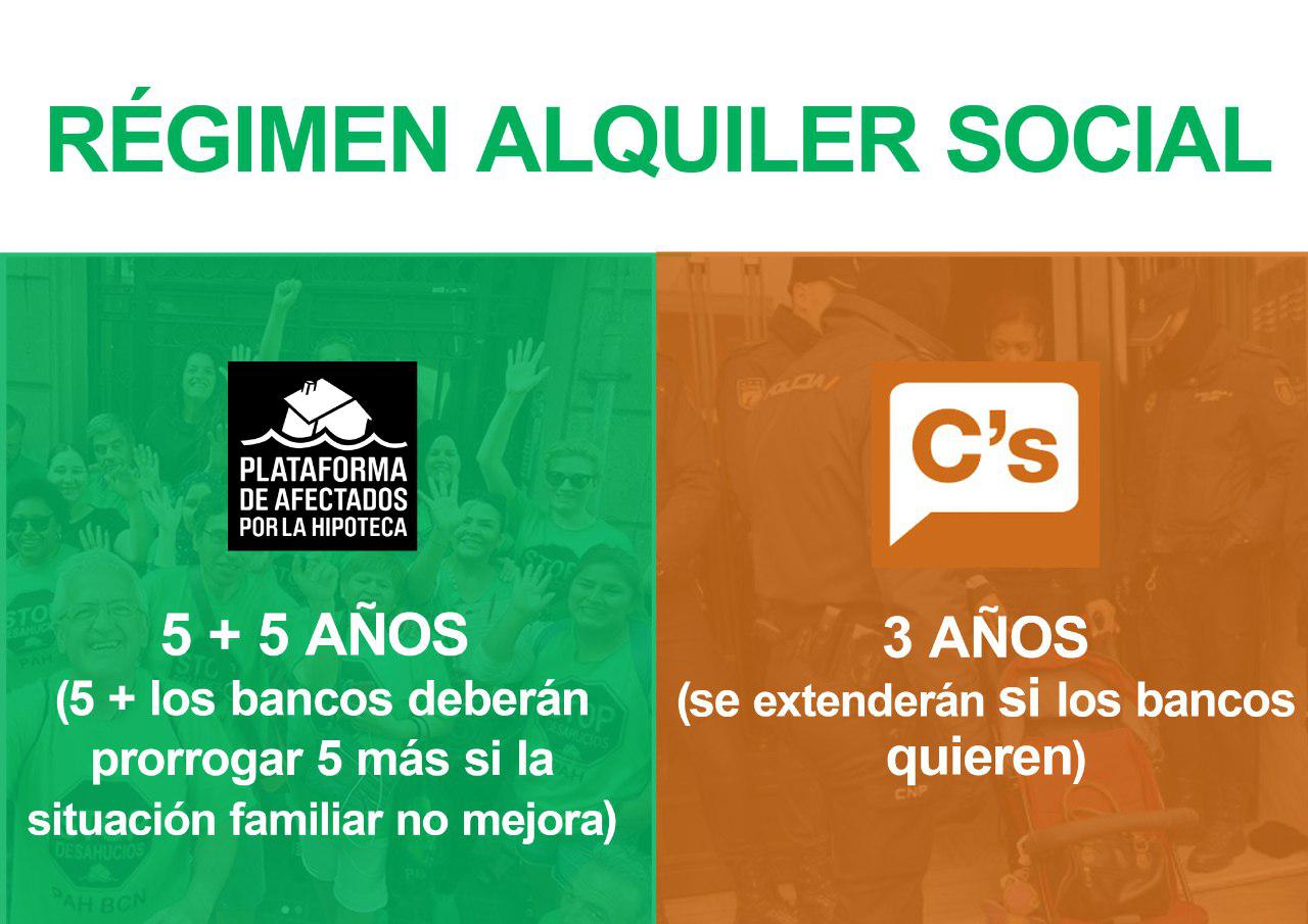 La ley de segunda oportunidad de Ciudadanos deja a 700.000 familias ejecutadas por la banca, en la calle y sin soluciones para sus deudas. Mientras que la Ley Vivienda PAH no solo daría una segunda oportunidad a estas 700.000 familias, sino una primera oportunidad a toda una generación de jóvenes que tiene dificultades para acceder a un alquiler asequible.
