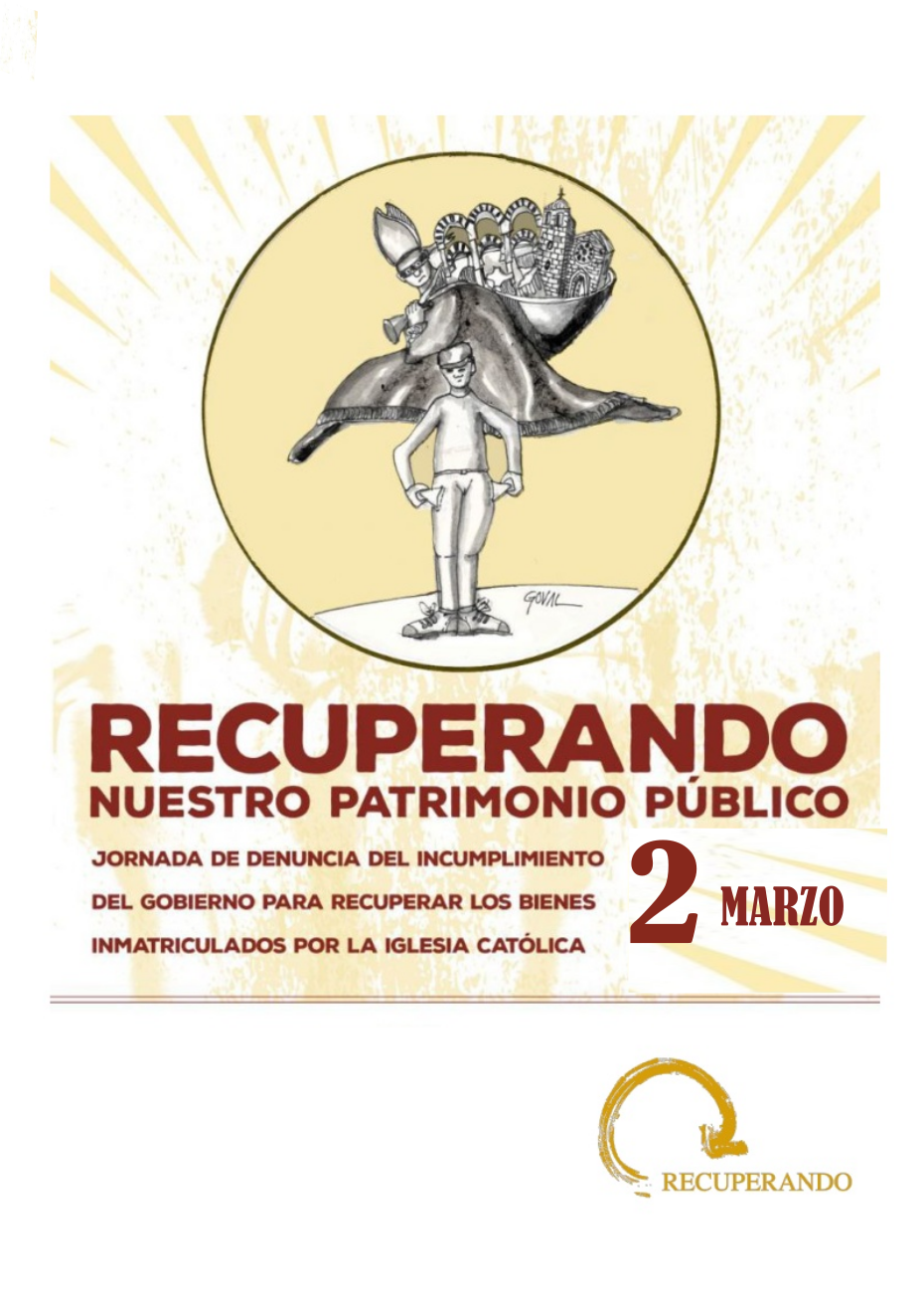 - La protesta responde a la inacción y el incumplimiento del Gobierno para recuperar los bienes inmatriculados por la Iglesia Católica. Bienes que -se estima- pueden alcanzar más de 100.000, de los que únicamente una pequeña parte se conoce.