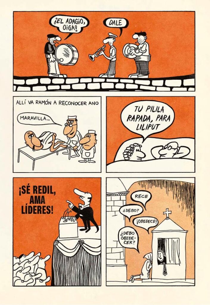 Se ha quedado fuera casi todo, era una tarea imposible. Sí he procurado que quedasen todas las épocas representadas. También he incluido referencias y autores que no me gustan nada, ¿eh? A ver, un autor que siempre me ha flipado es el italiano Benito Jacovitti y hubiera molado incluirlo, pero no sé… Tampoco pretendía que esto fuese una enciclopedia, sino crear un universo paralelo en el que el palindromismo gráfico fuesea un género de gran tradición.