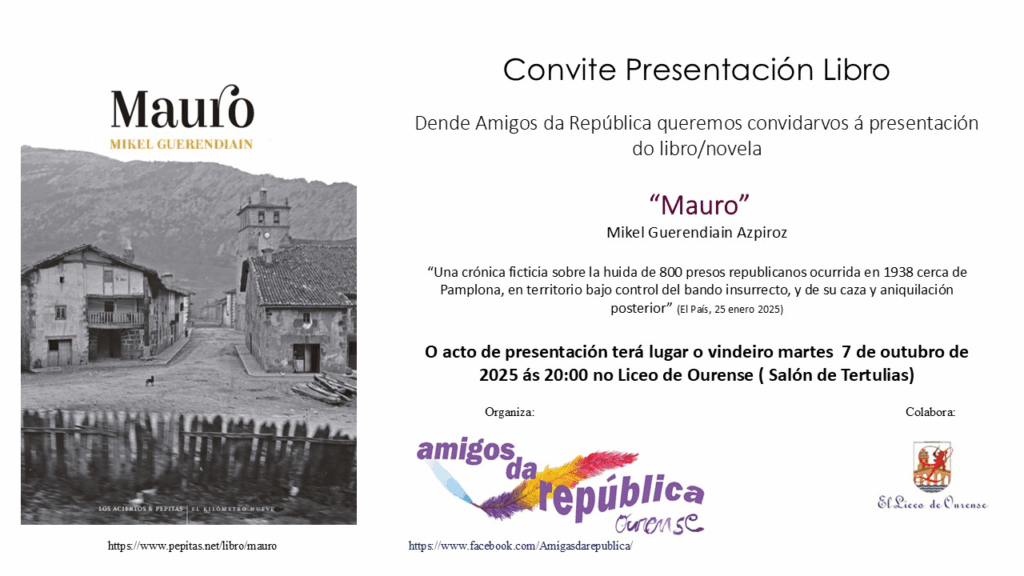 Amigos da República organiza a presentación do libro “Mauro”, de Mikel Guerendiain Azpiroz