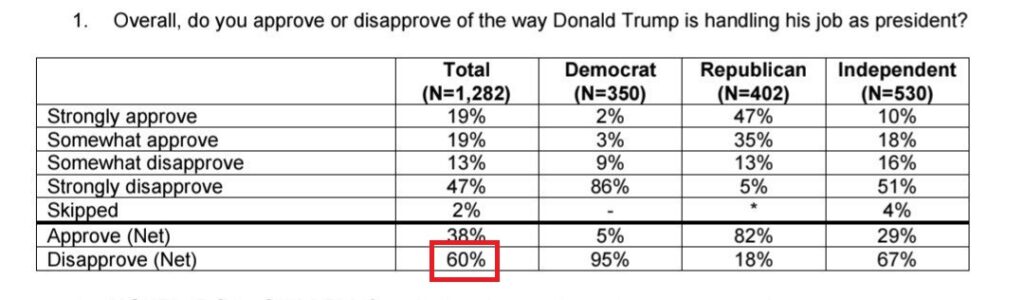 La mayoritaria de estadounidenses contrarios a la guerra contra Irán opinan así en un contexto de amplia desaprobación hacia su presidente, el 60%, con una aprobación de su política económica de solo el 23%.