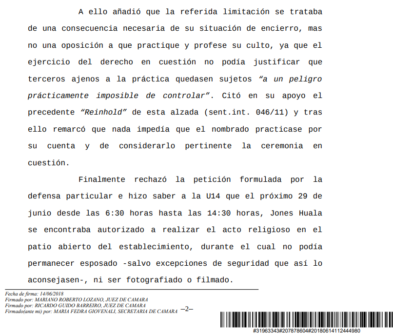 | Parte del fallo que dice que ahora es peligrosa la misma ceremonia que ya realizaron en el 2016. |