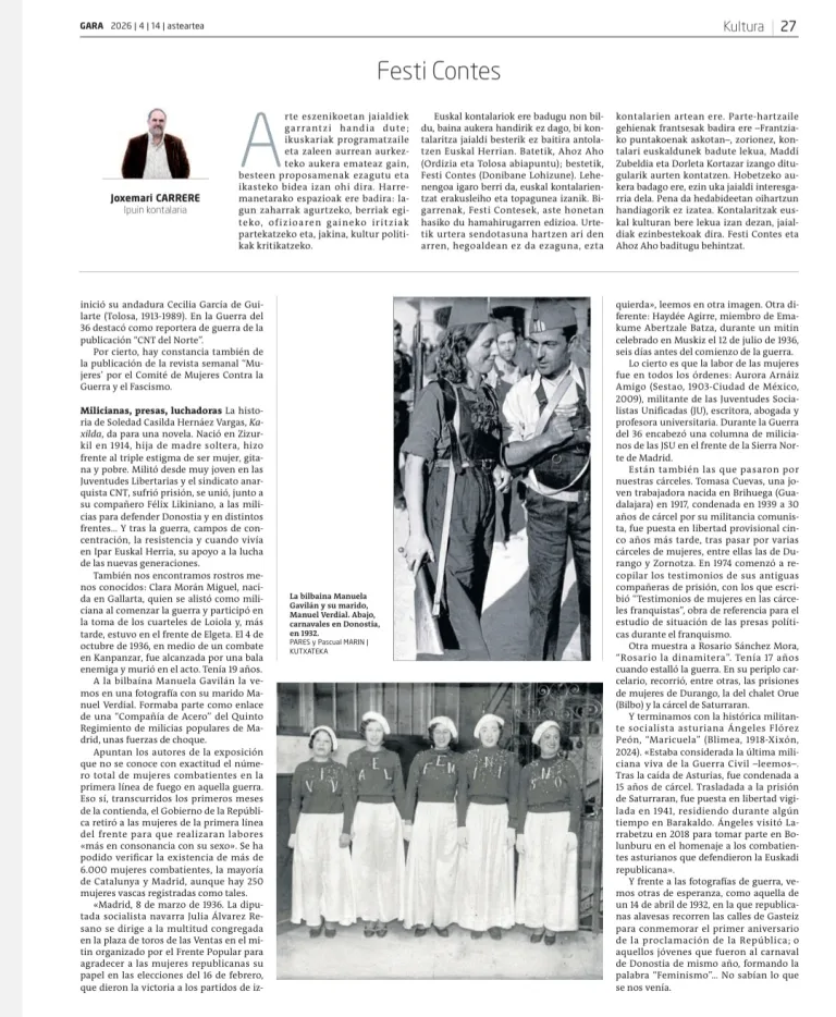 Apirilak 22, eguastena: Emakumeak ErrepublikanMari José Villarekin, Jon Penchek aurkeztuta.