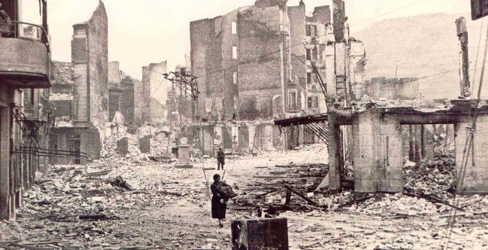 Gernika, villa vasca destruida por la aviación nazi el 26 de abril de 1937, un bombardeo autorizado por Franco