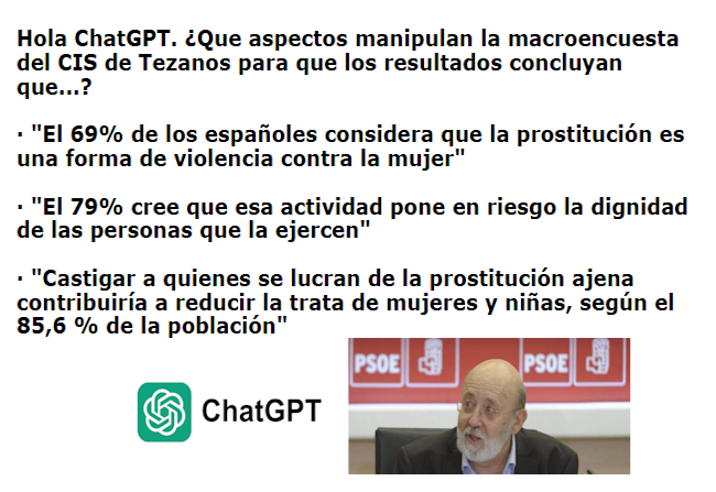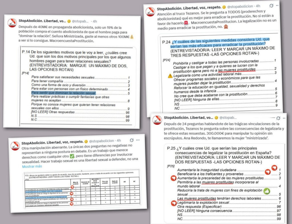 Apenas unos días más tarde de saber que Ana Redondo vetaba ilegalmente a toda asociación crítica con la criminalización de la prostitución del acceso a las ayudas de su Ministerio, hoy de nuevo nos toca escribir sobre la encuesta del CIS encargada por Igualdad (330.000€ de gasto público) y sus adulterados resultados.