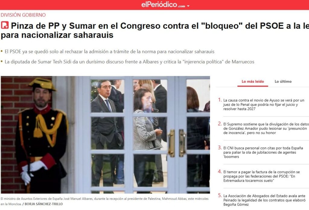 Precisamente, El Periódico recurrió en su titular de ayer al término “Pinza de PP y Sumar” para describir determinadas dinámicas entre grupos parlamentarios frente al bloqueo de iniciativas relacionadas con el Sáhara. La expresión remite a antiguos debates sobre acuerdos tácticos entre partidos de distinto signo -una fórmula que fue usada en el pasado para señalar pactos inesperados como el de la IU de Julio Anguita y el PP- tras optar Felipe González por un Gobierno con apoyo de CIU y despreciar a Izquierda Unida, y que hoy vuelve a la palestra, aunque con connotaciones distintas y con un uso intencionado que puede favorecer narrativas más cómodas para el PSOE, en detrimento de una descripción fiel del conflicto político y de los verdaderos intereses en juego.