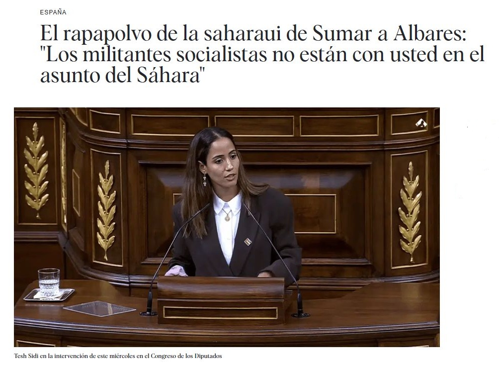 Otros medios, como El Independiente, o similares del ala derecha-extrema-derecha, a quienes poco importa la autodeterminación del pueblo saharaui más allá de su utilización mediática para el desgaste del PSOE, o simplemente por su postura naturalmente xenófoba contra Marruecos, también publicaron alguna pieza al respecto. La de esta web, de vergüenza ajena solo en el titular: «la saharaui de Sumar«.