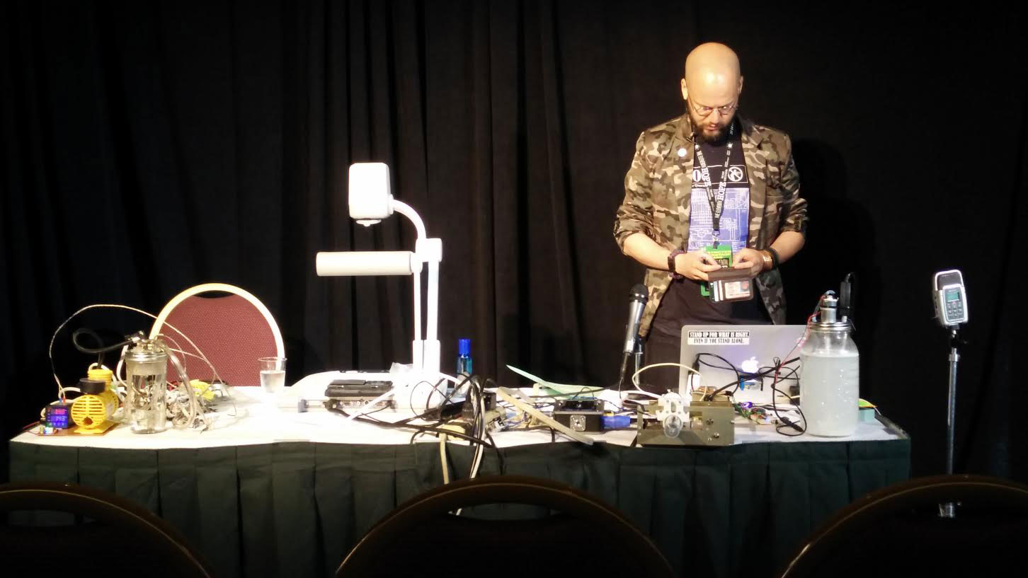 Le conocí en un bar al otro lado de la calle de la HOPE después del término de su charla sobre medicina DIY. Se estaba reuniendo con sus colaboradores de Four Thieves, que habían llegado de todo el país para asistir a la conferencia y descubrir las nuevas tecnologías médicas que el colectivo estaba desarrollando. Laufer dio inicio a la celebración con un brindis.