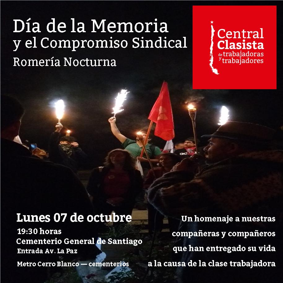 Es el CIUS, con el apoyo entusiasta de la Asociación de Funcionarios del Cementerio General, quien propone realizar una romería nocturna para recordar a nuestros caídos y hoy la fecha la hace suya nuestra Central Clasista.