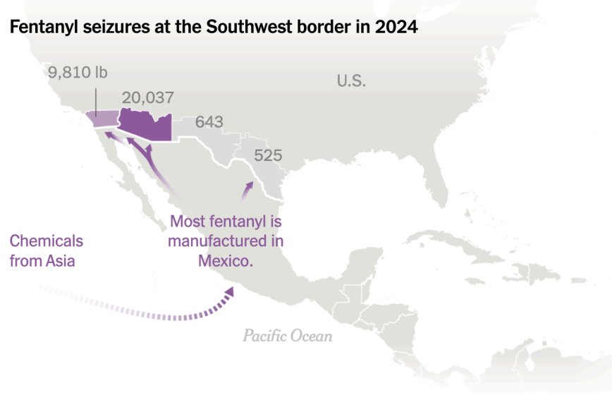 El segundo gran punto que confirma el New York Times es también el más revelador en la narrativa reciente de Washington: Venezuela no tiene ningún vínculo con el fentanilo. Los datos oficiales del propio gobierno estadounidense, reunidos en el International Narcotics Control Strategy Report (INCSR 2025) del Departamento de Estado y en los informes de la DEA, establecen que la totalidad de la producción ilícita de esa sustancia proviene de laboratorios instalados en México, donde se sintetiza con precursores químicos importados desde China y otras naciones asiáticas.
