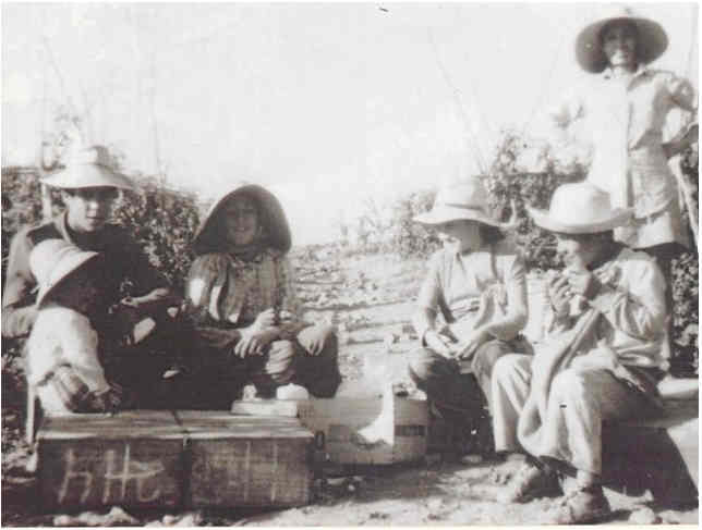 | Familia de aparceros en el sur de Gran Canaria. Hasta los años 1960-70 era normal que los niños trabajaran y no asistieran al colegio. |