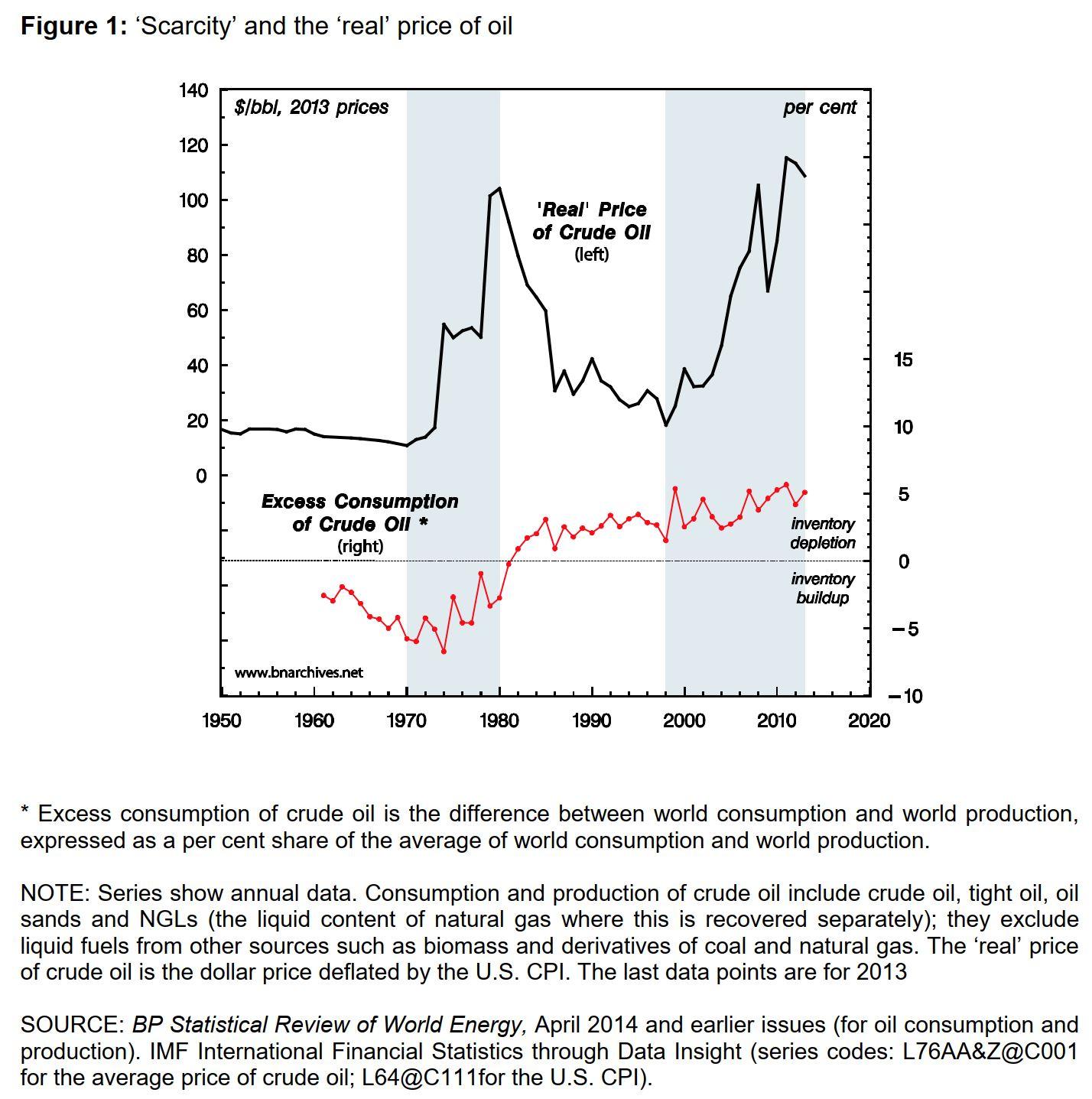 Tomemos el ejemplo del petróleo . Como muestra este gráfico, el precio ‘real’ del petróleo (deflactado por el IPC de EE. UU.) no tiene nada que ver con el exceso de consumo/producción. No es el resultado de la escasez física, sino de los ‘conflictos energéticos’ en las regiones productoras de petróleo (el último fue la invasión rusa de Ucrania).