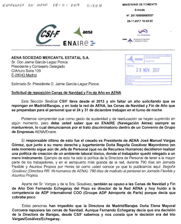 Cena de Navidad: tema recurrente que CSIF lleva pidiendo desde 2013, lo pudiste leer en Presidente García-Legaz (AENA): CSIF le solicita reponga las cenas de Navidad/Fin de Año en la empresa