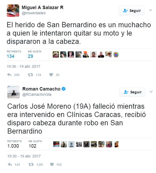 Pero sin duda de lo que más se habla sobre estas protestas de Venezuela, es de los muertos que se han producido. Hasta el momento de la redacción de este post se han producido 8 asesinatos. Los medios de comunicación hacen referencia a ellos con titulares genéricos del estilo de «Ya van 8 muertos por la represión de las protestas en Venezuela». Generalmente son titulares que inducen a pensar que todas esas víctimas han sido causadas por la policía durante la represión de las manifestaciones. Una redacción que se hace con clara intencionalidad.