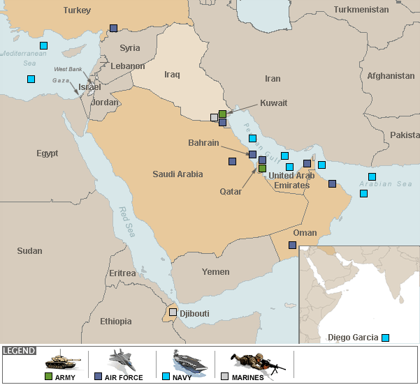En el caso de una guerra con Irán, las operaciones en Medio Oriente serían coordinadas por el Comando Central de EEUU con cuartel general en Tampa, Florida, en contacto permanente con el cuartel general del comando avanzado en Qatar.