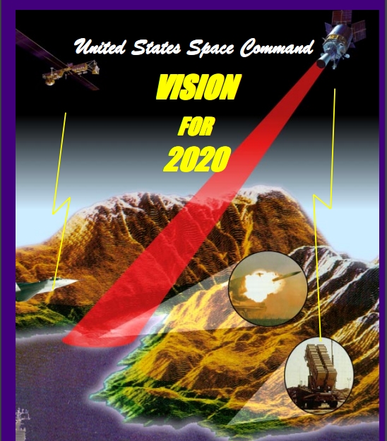 En 1997, el ahora reestablecido Comando Espacial de los Estados Unidos anunció su compromiso con el «Dominio de Espectro Total» [full spectrum dominance]. El informe «Visión para 2020″ AQUI explica que el Dominio de Espectro Total significa el control militar de tierra, mar, aire y el espacio (la llamada cuarta dimensión de la guerra) «para proteger los intereses y la inversión de los EEUU» «Proteger» significa garantizar la libertad operativa. “Interés e inversión de Estados Unidos” significa ganancias corporativas.