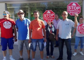 Concentración de Stop Desahucios Granada 15M en las puertas de La Caixa exige una solución para varias familias
