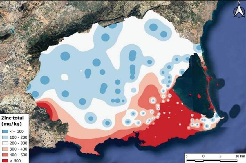 Denunciamos la inacción administrativa ante unos mapas oficiales de isoconcentraciones de plomo (Pb), cadmio (Cd), zinc (Zn) y cobre (Cu) que muestran patrones espaciales coherentes de contaminación en suelos agrícolas del Campo de Cartagena. No hablamos de conjeturas: hablamos de cartografía elaborada para la Administración, con zonas claramente identificadas como hotspots y gradientes compatibles con aportes históricos de origen minero-metalúrgico.